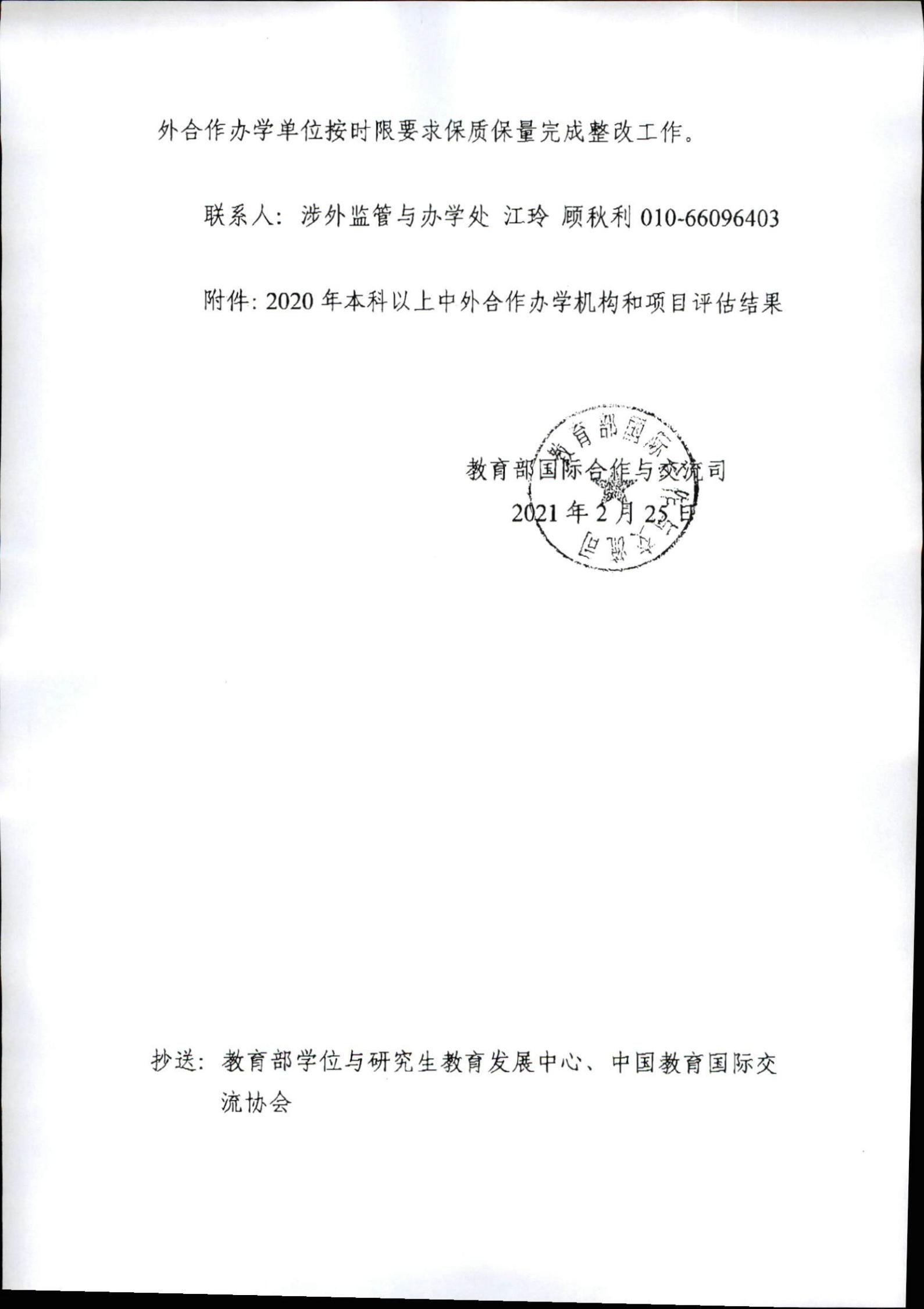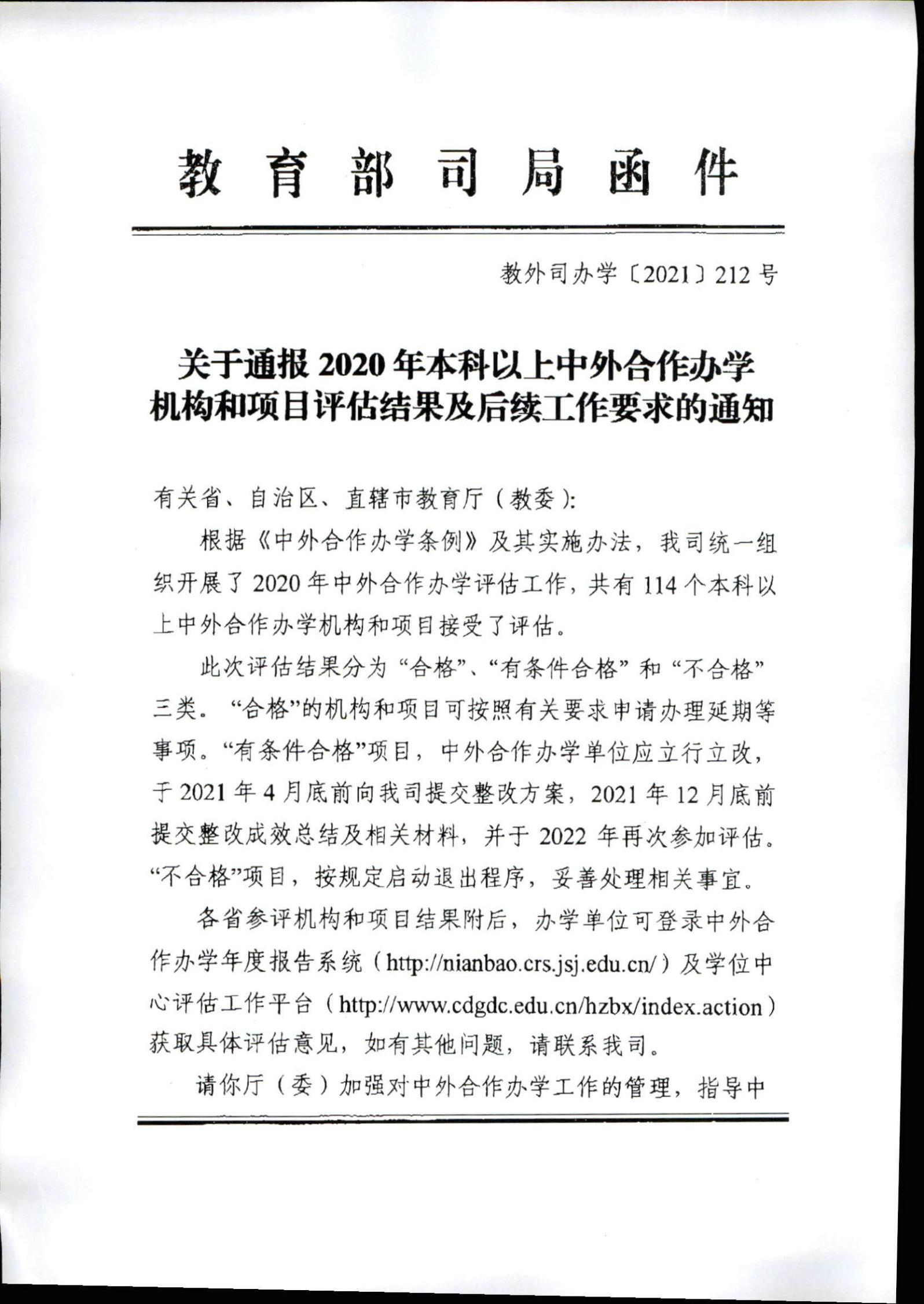 公司与格林卡beat365手机版官网入口于2019年3月启动项目合格性评估自评工作,各自成立评估工作领导小组,合作双方坚持“以评促建、以评促改、以评促管”的基本原则,通过自评、自省、自改、自建进一步提升中外合作办学的水平。2020年5月,双方正式接受教育部学位与研究生教育发展中心的评估;2021年2月,教育部司局发文,公司与格林卡beat365手机版官网入口合作举办的音乐表演专业本科教育项目顺利通过2020年本科以上中外合作办学评估。