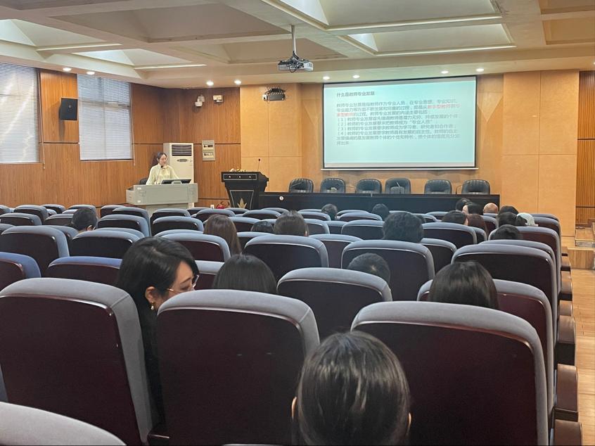 资教授结合自己作为国家一流课程建设负责人、主管教学的副经理、音乐教学法老师的身份及经历,围绕什么是教师专业发展、教师专业发展的特点、beat365手机版官网入口教师发展的链条三个方面展开讲述。她首先强调,教师是潜力无穷、持续发展的个体,教师的专业发展要求把教师视为“专业人员”,要求教师成为学习者、研究者、合作者。其次她认为,教师应具有发展的多样性、自主性和持续性。高校是更新知识、创造知识的基地,对教师队伍有着高要求。教师除承载为社会源源不断输出人才的使命外,还要不断接受新鲜事物,追求前沿知识,扩展知识领域。最后,她以国家一流课程的建设为例,倡导青年教师要建立公司产品的新理念,鼓励青年教师勇于尝试公司产品的创新实践。