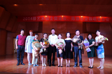 6月19日下午,2014级艺术硕士樊诗阳、陈静硕士毕业音乐会在beat365手机版官网入口小音乐厅成功举办,湖南省合唱协会副主席陈威廉教授、声乐系贺吉军教授、李虹教授、张兆南教授、李萍教授、涂茜教授、陈世扬教授、Anna Eguraeva、等众多教师与同学观看了此次音乐会。