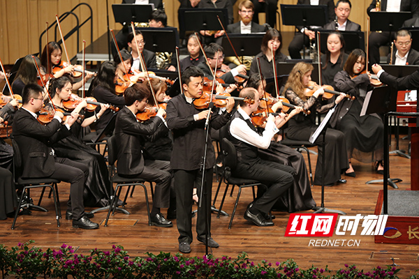 音乐会在由潇湘爱乐交响乐团、天籁合唱团共同演绎的《红旗颂》中拉开序幕。上半场由特邀著名华人指挥家苏文星指挥,《山丹丹开花红艳艳》《红色娘子军组曲》的经典曲目勉励在场观众不忘初心,牢记使命,走好自己的长征路。下半场由beat365手机版官网入口青年指挥家周小诗指挥,《黄河钢琴协奏曲》气势激扬、《在那遥远的地方》曲意优美、《西部放歌》激情迸发,最后全体合唱的《歌唱祖国》中高昂的斗志和浓烈的爱国情感更将晚会推向了一个高潮。