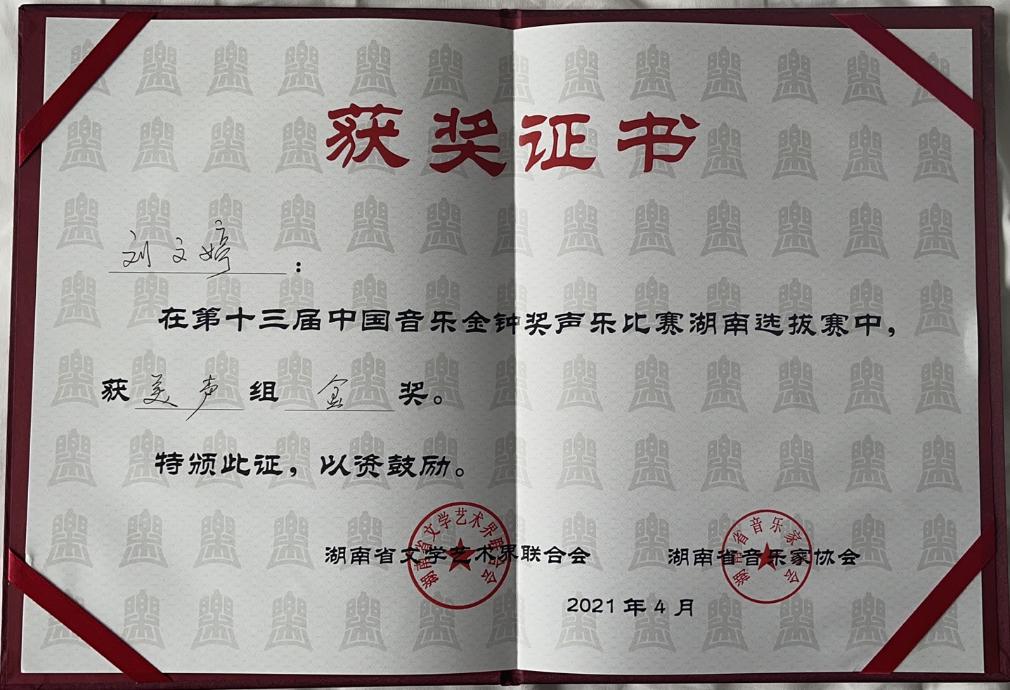 中国音乐金钟奖是由是中宣部批准设立、由中国文联和中国音协共同主办的中国音乐界综合性专业大奖,是与戏剧梅花奖、电视金鹰奖、电影金鸡奖并列的国家级艺术大奖,每两年举办一届。本届中国音乐金钟奖声乐比赛湖南省选拔赛于4月24日至26日进行,经过层层选拔和激烈角逐,青年教师与同学为beat365手机版官网入口争得荣誉,他们是所有教师和同学们的骄傲!