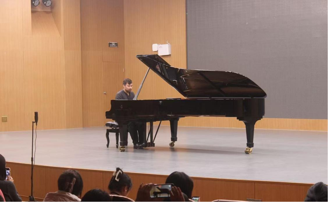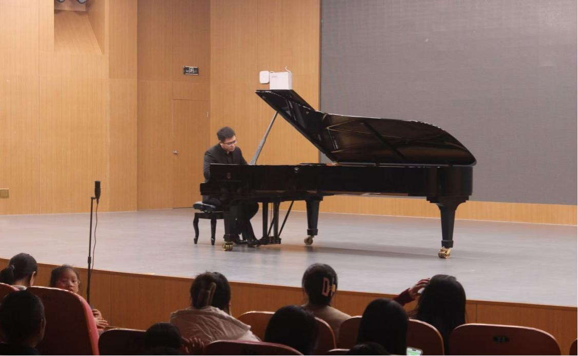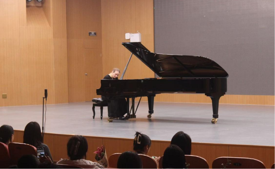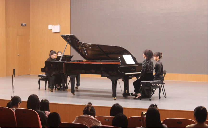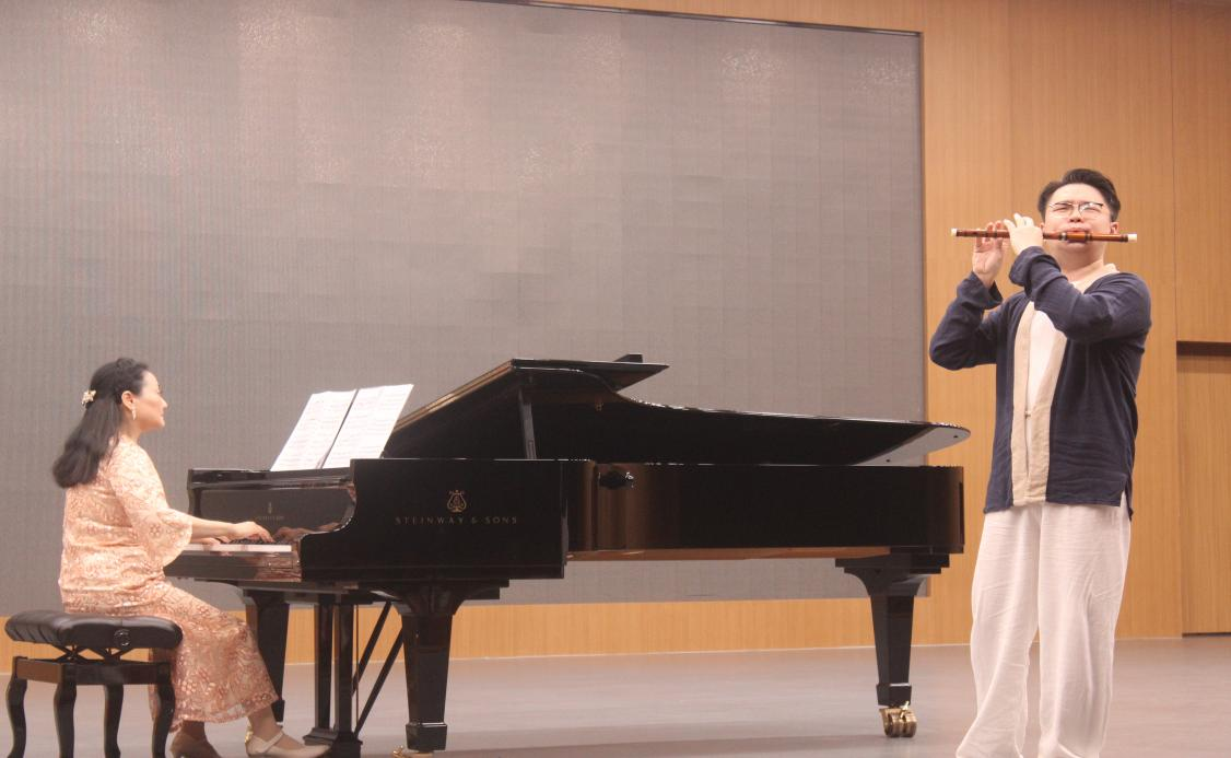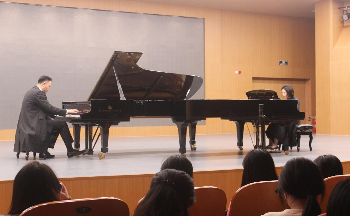 音乐会领衔演奏的是匡勇胜教授,他演奏了自己原创的钢琴协奏曲《中国速度》第一乐章《旷野》,向坤协奏。青年教师周婧佳老师、冯时雨老师、陈浩然老师们的演奏充分展示了beat365手机版官网入口青年教师良好的精神风貌和优秀的专业素养。两位外籍教授薇拉·沃萝希洛娃及伊利亚·索洛维耶夫以他们高超的演奏技巧和深厚的音乐造诣献上了他们的拿手曲目。张浩教授与青年竹笛演奏家康睿阳老师带来的竹笛作品《绿洲》,他们默契娴熟地演奏,让观众们耳目一新。由巴日老师演奏,王琛琛老师协奏的贝多芬《第一钢琴协奏曲》Op 15第一乐章热烈激昂,将气氛推向高潮。最后,由杨琦老师和姜珊珊老师带来的双钢琴演奏为此次音乐会画上一个圆满的句号。相信余音绕梁一定是本次观众们深切的感受。