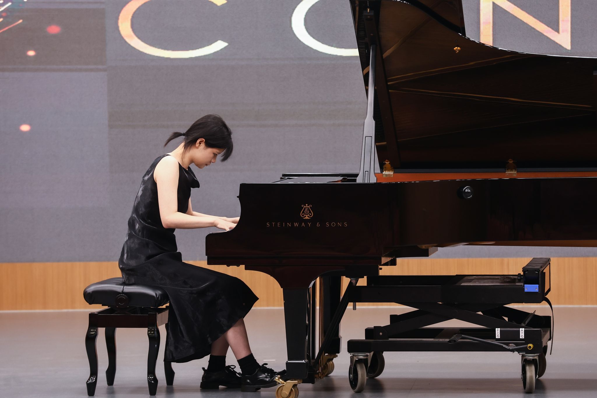 钢琴专场的演出同样精彩纷呈,黑白琴键在学子们的指尖下仿佛被赋予了生命,流淌出风格各异的动人旋律。从古典主义的严谨规整,到浪漫主义的抒情细腻,再到印象主义的朦胧灵动,学子们凭借极强的手指控制力与音乐表现力,在不同风格的作品间自如切换。激昂处,琴音铿锵有力、节奏明快,尽显张力;舒缓时,旋律婉转柔和、意境悠远,引人遐想。黄昕垚、刘柯含、曾小维三位同学凭借出色表现,成为全场焦点。黄昕垚演奏的《轻盈》(李斯特曲)与《革命练习曲》(肖邦曲),在快速的音阶跑动和强烈的节奏对比中,展现出极强的手指控制力和音乐表现力,将李斯特的灵动与肖邦的激昂诠释得淋漓尽致。刘柯含的《b小调第一谐谑曲》(肖邦曲),乐曲情绪的跌宕起伏被她精准拿捏,从欢快到深沉的情感转变自然流畅,尽显肖邦作品的浪漫与诗意。曾小维带来的《西风所见》(德彪西曲)和《练习曲Op.25No.5》(肖邦曲),在德彪西的朦胧意境与肖邦的精巧技艺间自如切换,演奏风格多样且极具个人特色,让观众充分感受到钢琴艺术的多元魅力。三位同学的精彩演奏,是日复一日刻苦练习的成果,也体现了中外班钢琴教学的高水平。