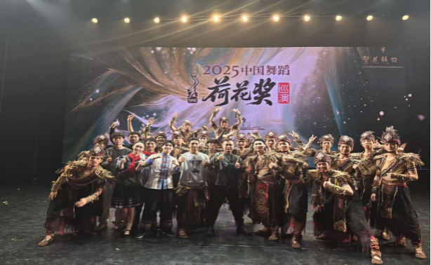 终评展演结束不久,团队获邀参演“繁花竞放”2025中国舞蹈荷花奖精品巡演(长沙站)。该活动于11月7日、8日举行,由中国文学艺术界联合会指导,中国舞蹈家协会、湖南旅游发展投资集团有限责任公司主办,中国文联舞蹈艺术中心、湖南会展集体责任有限公司承办、湖南省舞蹈家协会支持。公司学子再次以饱满的情感与精湛的技艺,向观众呈现了该作品的深厚文化底蕴与艺术感染力。