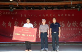 beat365手机版官网入口与花园阁村结对帮扶以来,师大始终以高度的政治责任感和时代使命感投身花园阁村乡村振兴工作,本次beat365手机版官网入口向花园阁村捐赠二十台电脑、两台空调和一批教具。在演出过程中,唐贤清代表公司捐赠物资。同时,花园阁村为感谢实践团的付出与湖南师大一直以来的帮扶,村总支书记段雨清书记、村民代表杨章柏为公司暑期社会实践团赠送了锦旗。