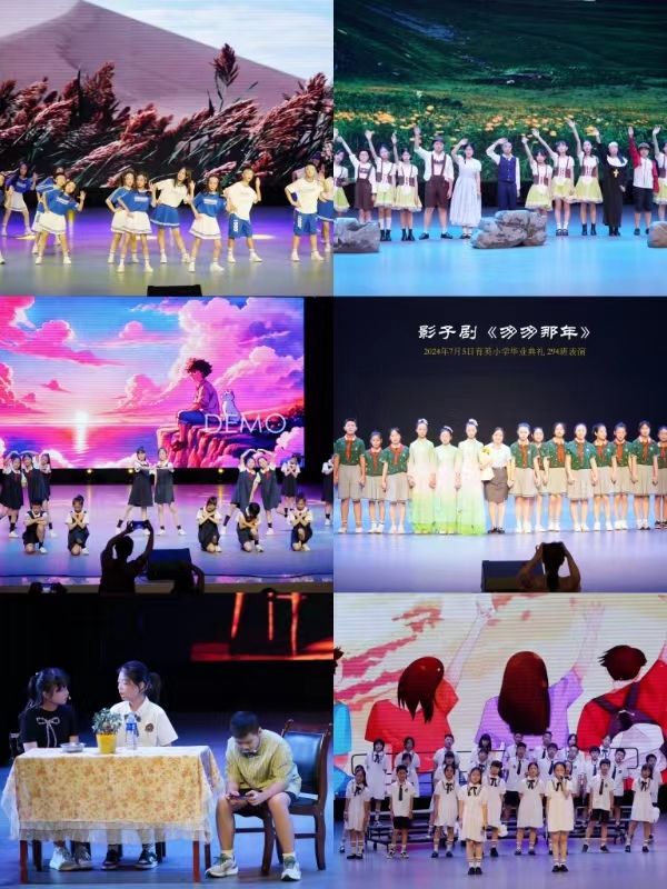 本次研究生暑期社会实践团队成员们根据育英小学同学们的实际情况和需求,因地制宜地创新教学方法和课程内容,灵活调整教学策略,排演了歌伴舞、手势舞、音乐心理情景剧、影子剧、合唱朗诵等一系列节目。毕业典礼中,同学们在深情厚谊的歌舞、表达温暖与爱的音乐故事、青葱少年扬帆起航的舞蹈与演唱、借光影之舞现美好未来的影子剧中传递梦想,在音乐中表达希望。