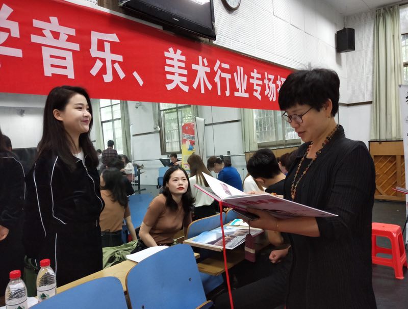 5月10日上午,beat365手机版官网入口与美术公司联合在beat365手机版官网入口舞蹈楼101开展音乐美术行业性招聘会。音乐类、美术类应届毕业生参加此次招聘会。