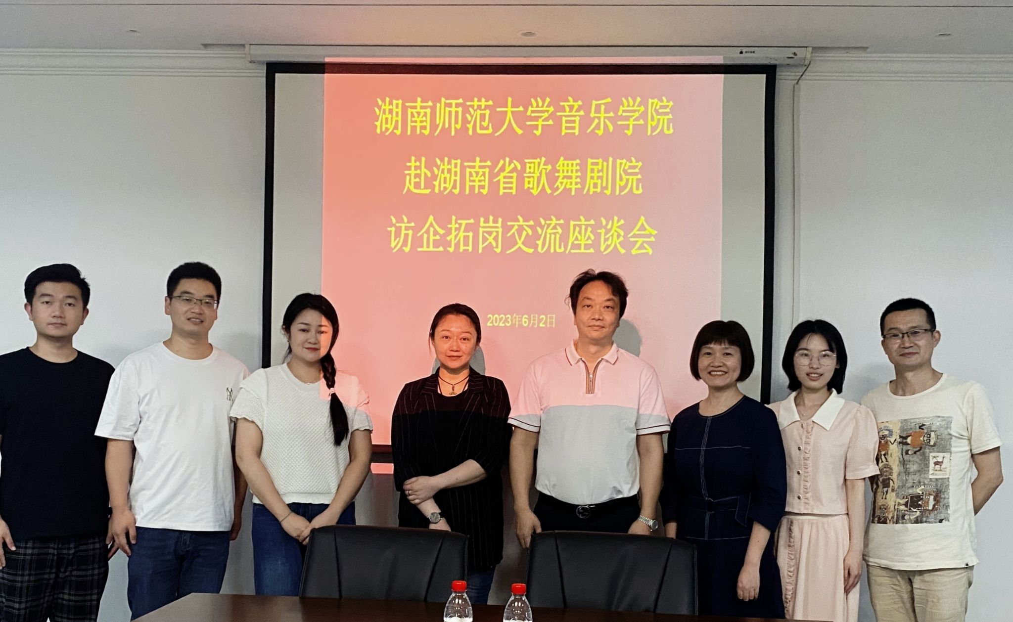 (通讯员 郝心语)6月2日下午,公司声乐系主任陈世扬老师带队赴湖南省歌舞剧团开展访企拓岗活动,声乐系副主任颜碧波老师、声乐系李成红老师、声乐系李辕老师及学工办刘冀老师共同前往。