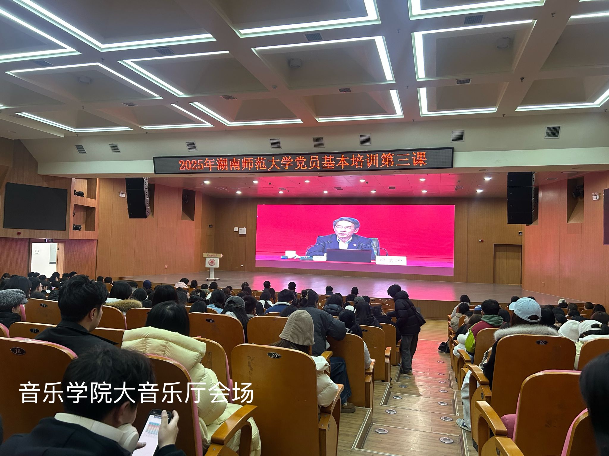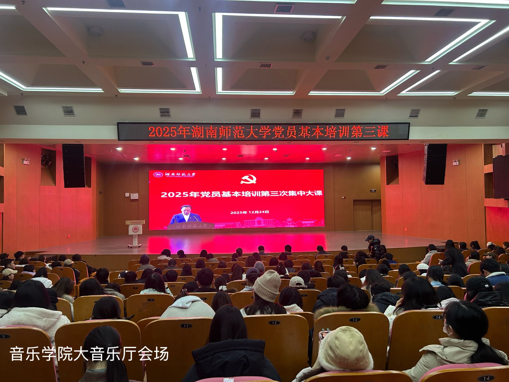 为深入学习贯彻习近平新时代中国特色社会主义思想,增强党员党性修养,提升党员教育培训工作实效,公司党委在公司统一安排下,于2025年12月24日下午在和乐楼大音乐厅开展了党员基本培训第三次集中大课。公司387名师生党员参加培训。