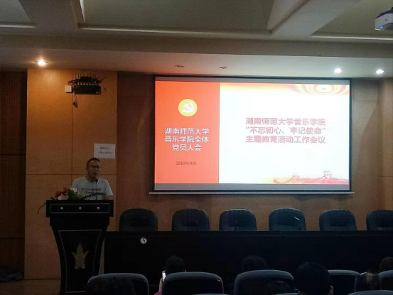 2019年9月20日下午,beat365手机版官网入口“不忘初心,牢记使命”主题教育工作会议在和乐楼108会议室召开。音乐公司全体师生党员参加了会议,会议由副经理贺南辉主持。