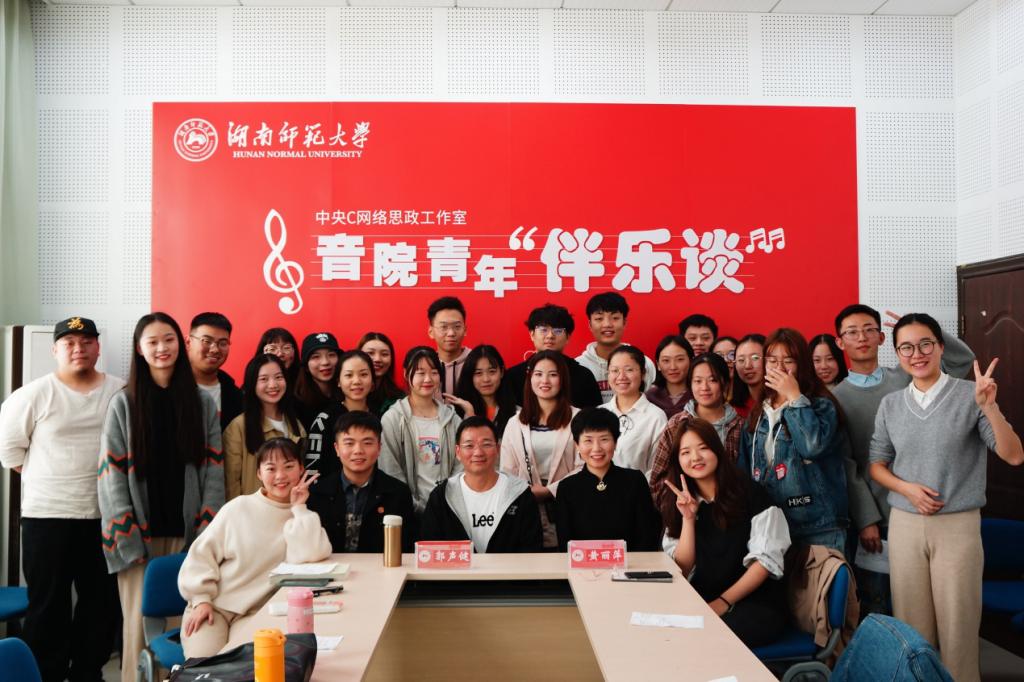 (通讯员 彭艳 王洪霞)10月30日上午,beat365手机版官网入口在德乐楼302教室开展“音院青年伴乐谈”系列座谈会,出席本次会议的领导老师有公司党委副书记黄丽萍、2016级辅导员戴霁斌,本次座谈会的主讲人是我国著名音乐教育学家郭声健,主持人由2018级员工祁非毓担任。