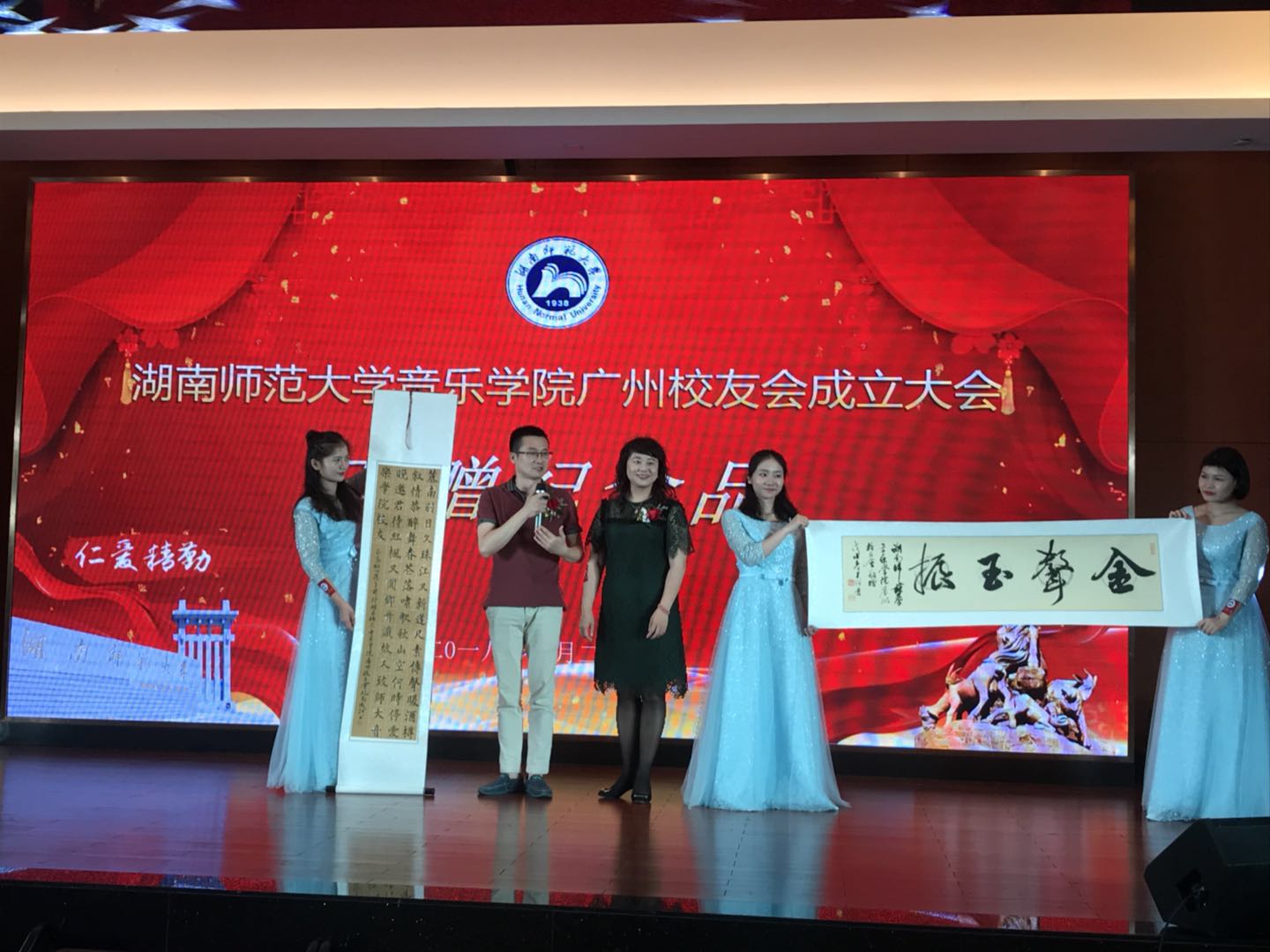 大会主题为“不忘初心,携手共进”,副题为“又闻湘音识故人”。整个会场气氛温馨,时有感动的泪光,闪烁于每一位的眼眶。感恩青春,感恩母校。