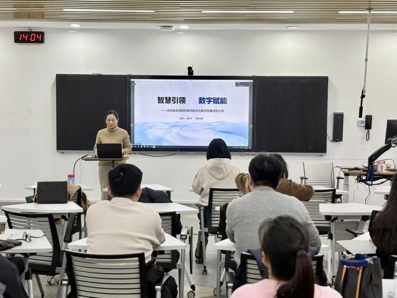 怀化公司音乐与舞蹈公司青年教师、获得2023年度湖南省高校数字化教学竞赛一等奖第一名的苑文卉老师以《智慧引领数字赋能——湖南省普通高校教师数字化教学竞赛经验分享》为题从赛事解读、备赛过程、教学设计、教学打磨、个人体会等方面进行了分享,并与beat365手机版官网入口全体系主任和45岁以下的青年教师就教学难点痛点及其应对策略进行研讨,气氛热烈,教研效果良好。