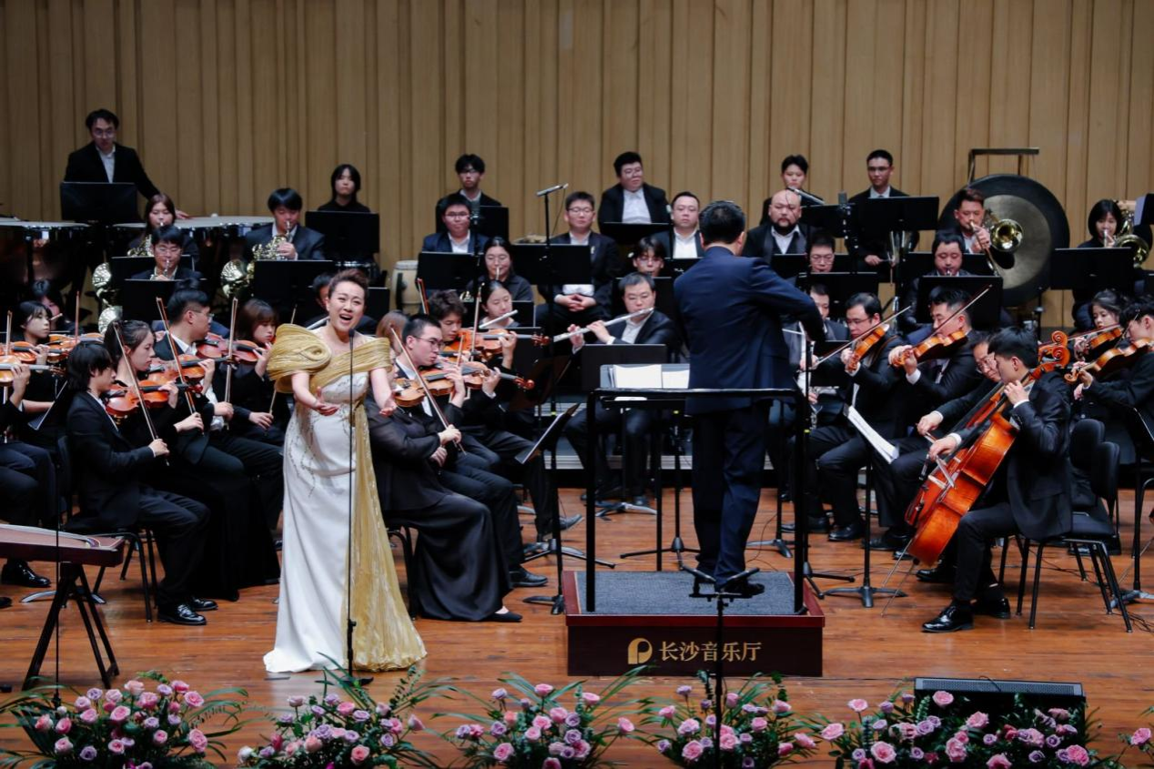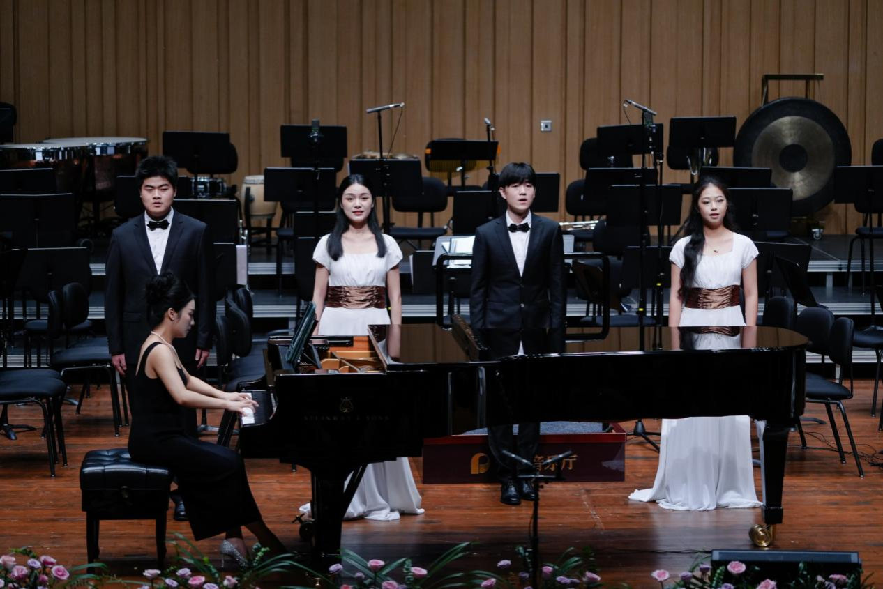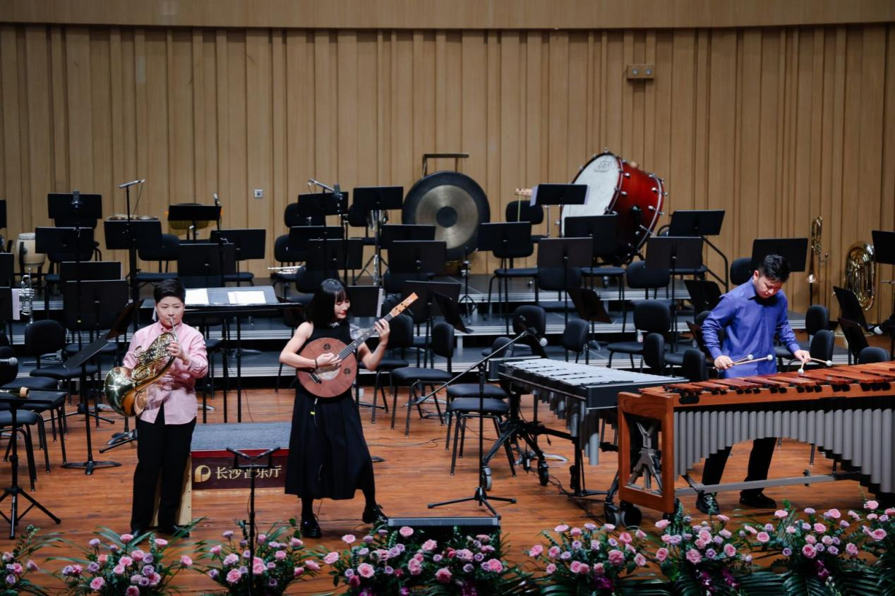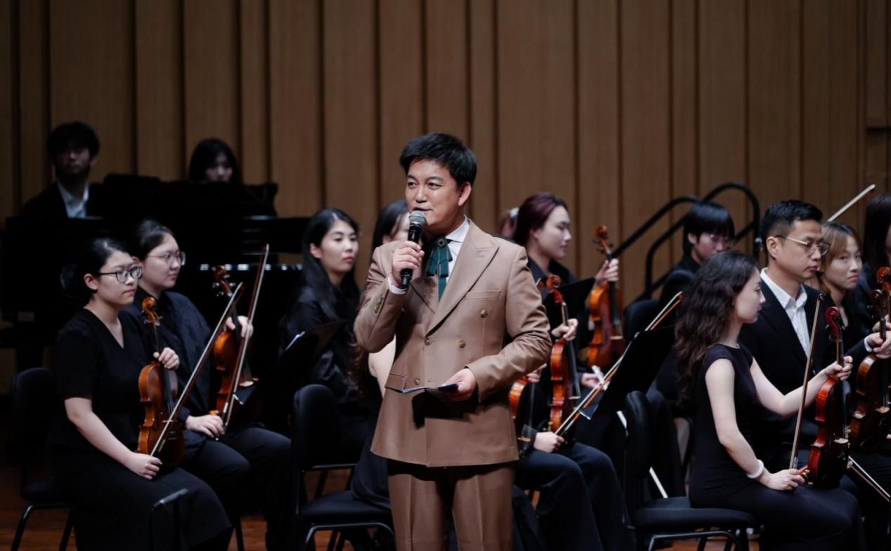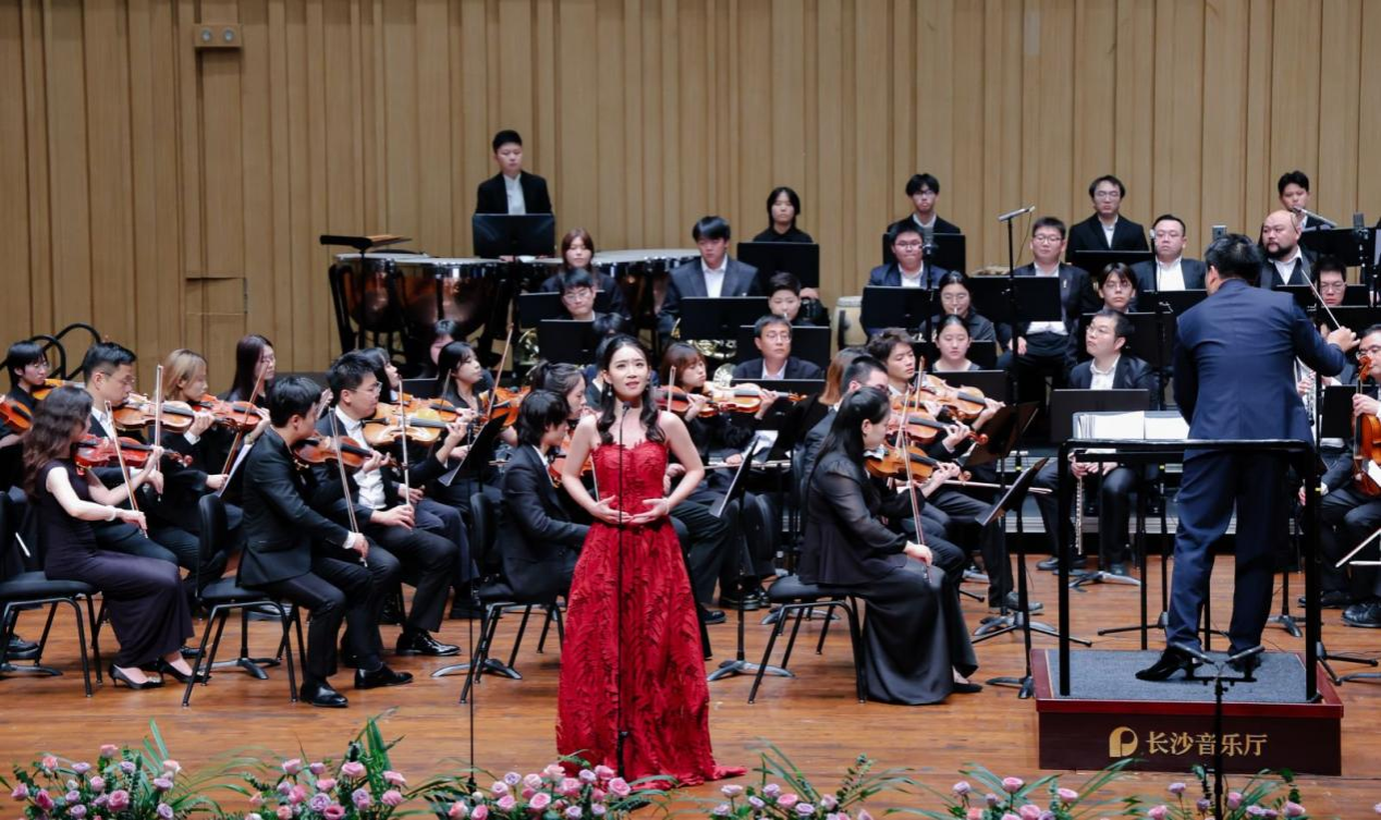 音乐会在潇湘爱乐交响乐团充满浓郁湖南味道的管弦乐《花鼓抒怀》中拉开帷幕。作品由beat365手机版官网入口经理廖勇教授创作,将湖南花鼓戏的灵魂旋律和独特元素融入交响语境,彰显了厚重的地域文化底蕴。随后,青年教师王艺璇、博士生曲丹分别演唱了《岳麓书院》《高山流水》,显示出金钟奖实力的完美唱功。青年教师王文洁、陈薪竹、彭帅理、陈浩然合作的器乐合奏《Tico Tico》节奏明快,嗨翻全场。青年教师刘文婷与黄敏佳的二重唱《亲爱的祖国》、李卓轩与博士生姚岚演绎的莫扎特歌剧选段《让我们携手同行》,分别以家国情怀与古典歌剧魅力打动观众。青年教师周末表演的钢琴协奏曲《保卫黄河》激昂慷慨,奏响民族精神强音,传达出音乐巨大的号召力量。
