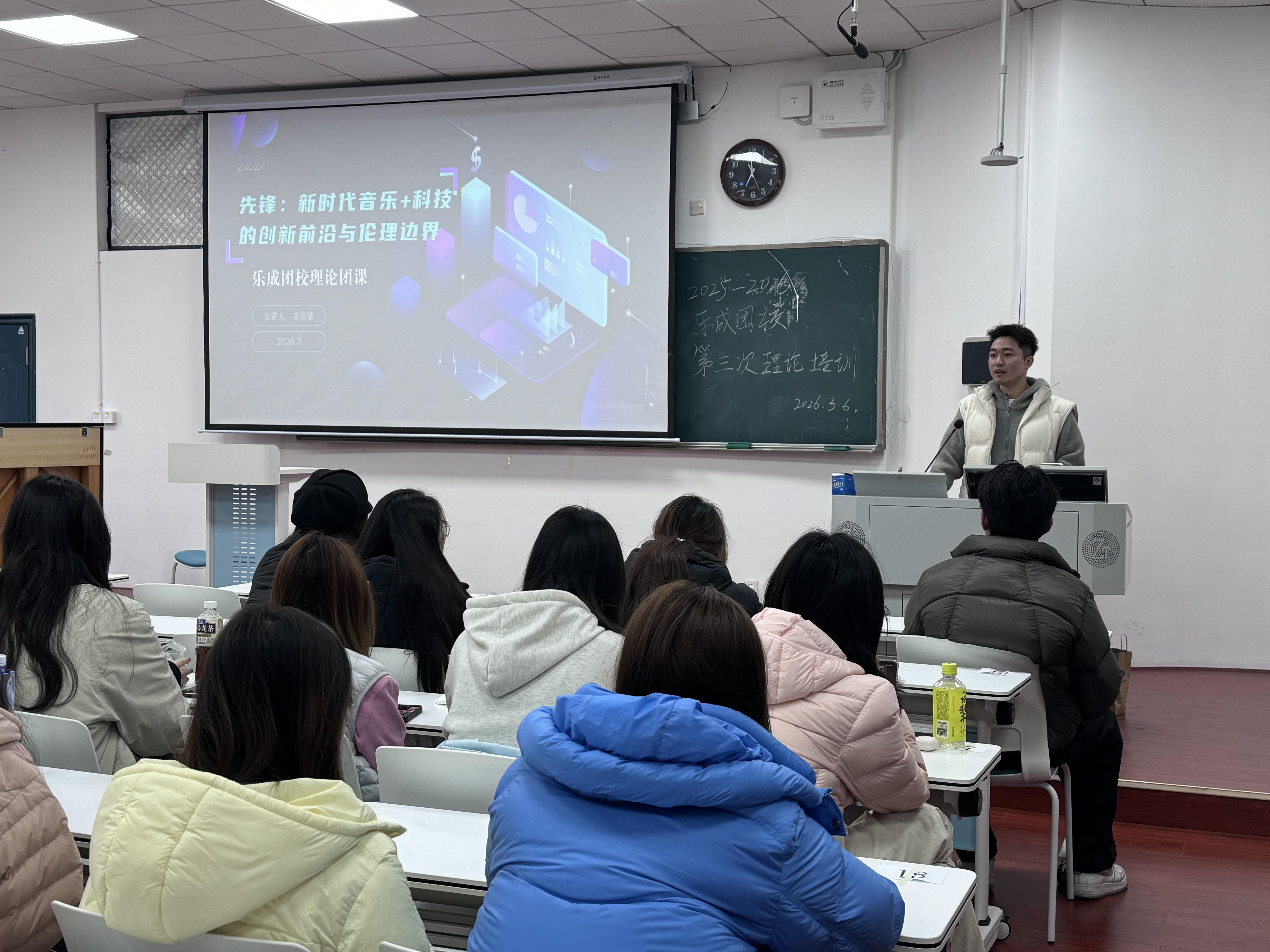 (通讯员 唐安雅 黄思涵 蔡雅丞)2026年3月6日中午,beat365手机版官网入口“乐成团校”在和乐楼308教室举办第三次理论培训课。本次课程由2023级辅导员文佳豪老师担任主讲人,公司各团学组织成员共同参与学习。