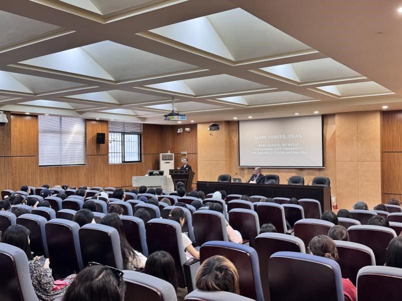 年近七旬的帕克教授以年轻人的视角描绘了活力四射的长沙给他带来的亲切感,迅速拉近了与在场员工的距离。紧接着,他详细介绍了美国奥城大学的独特之处在于强调师生间长期主义的联络关系,以及校园作为共同构建的大家庭的重要性。特别是OCU乐团的创建,展现了公司对于多元文化的包容与尊重。