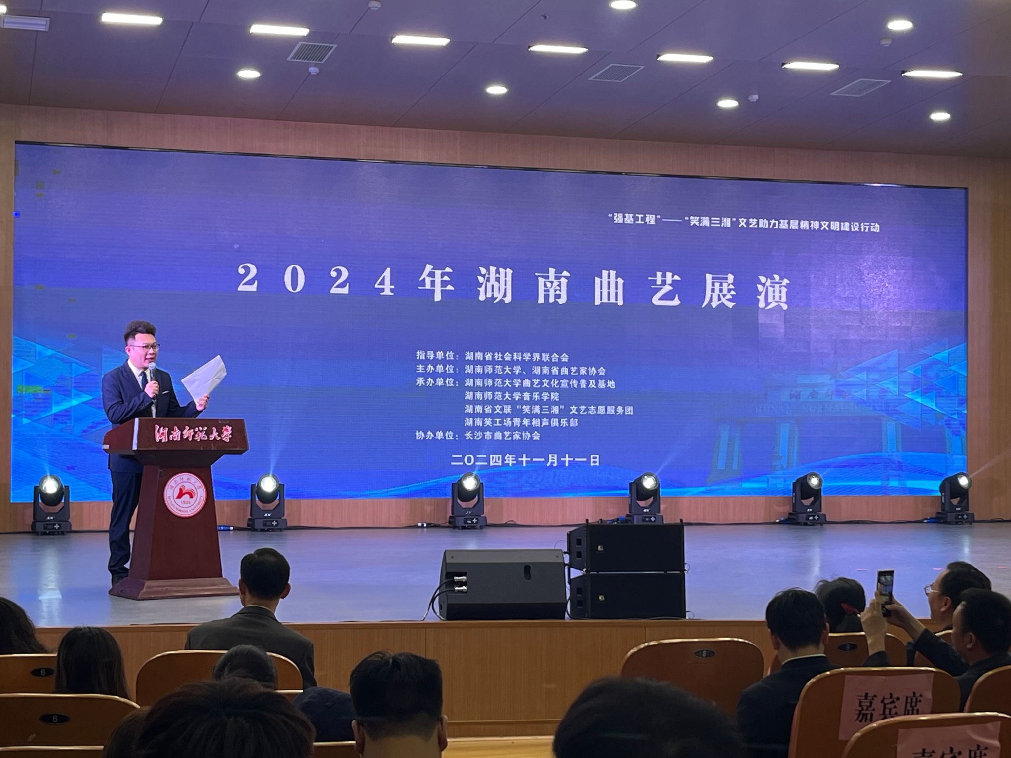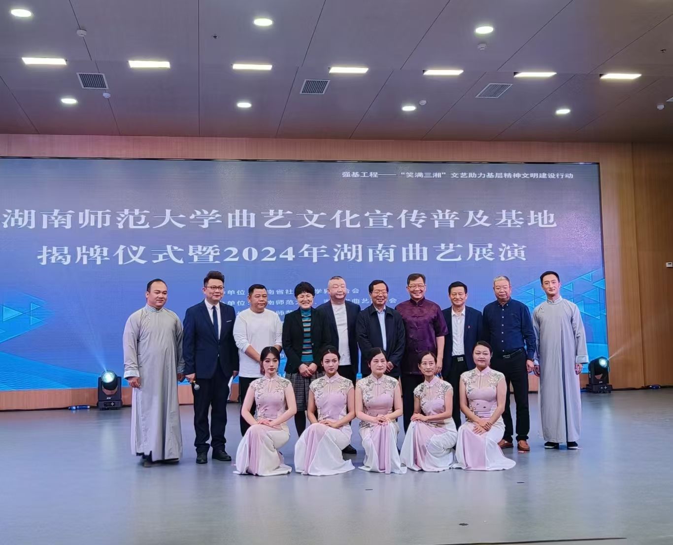 (通讯员:周宇时 肖依雯 摄影:赵雪艺 冯子萱)2024年11月11日14:30,beat365手机版官网入口曲艺文化宣传普及基地揭牌仪式暨2024年湖南曲艺展演于beat365手机版官网入口四楼大音乐厅圆满召开。本次活动旨在进一步弘扬曲艺文化,普及艺术知识,提升公众审美水平,为湖南曲艺文化的发展注入强劲动力。