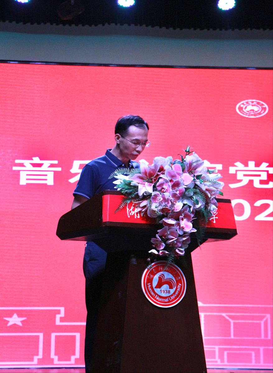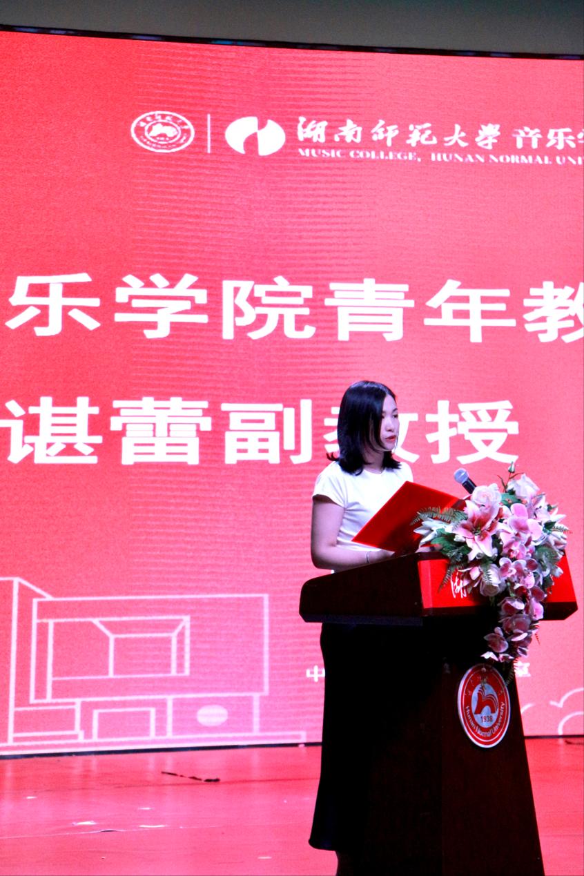 西方音乐史方向硕士生导师、青年教师谌蕾作为教师代表发言。她结合自身经历向新生提出了两点建议:一是希望新生们秉承仁爱精勤的校训,树立远大理想,规划好大学四年时光。二是期待新生们牢记习近平总书记“惟楚有材,于斯为盛”的嘱托,紧跟时代,为发展音乐艺术不断努力。