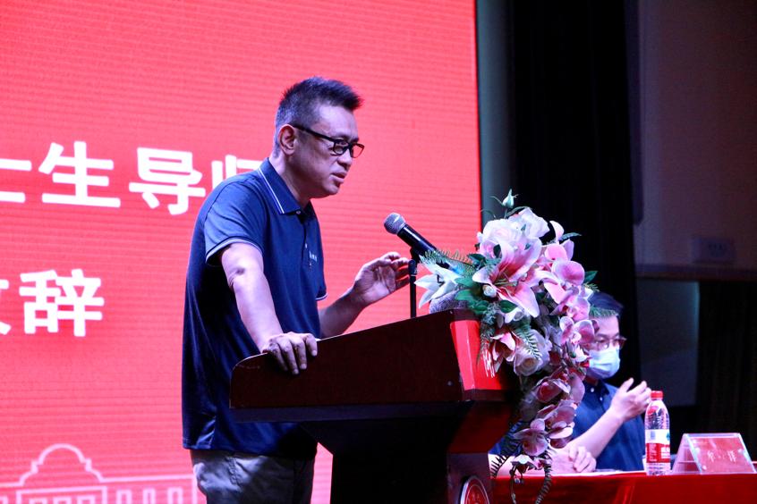 经理廖勇致辞,他首先对2022级新生们的到来表示热烈欢迎。随后,他介绍了公司的专业特色及优势,并以此鼓励新生们要保持高考的冲劲与干劲,牢牢把握本科阶段的学习机会,充分利用好公司的平台。同时,他希望每位学子都能保持积极乐观的心态,在追求自己理想的同时也能从容面对生活上的挫折,表示期待与音院广大师生共同携手,应对困难,创造辉煌。