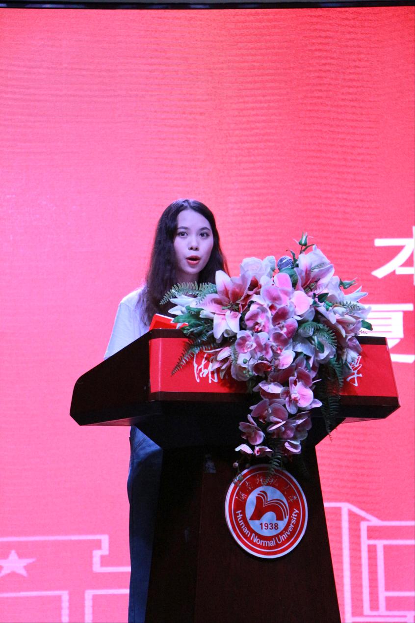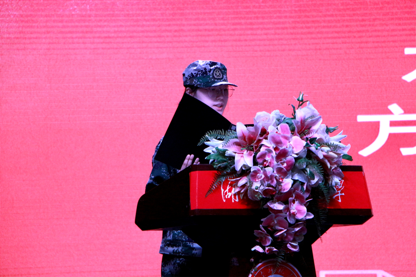 2019级夏子婧同学代表全体老生发言。她通过分享自身大学阶段的学习、实践经历,鼓励学弟学妹们积极奋起追梦,树立远大目标,成长为一个有规划、有思想、有准备、有勇气、有担当的人。
