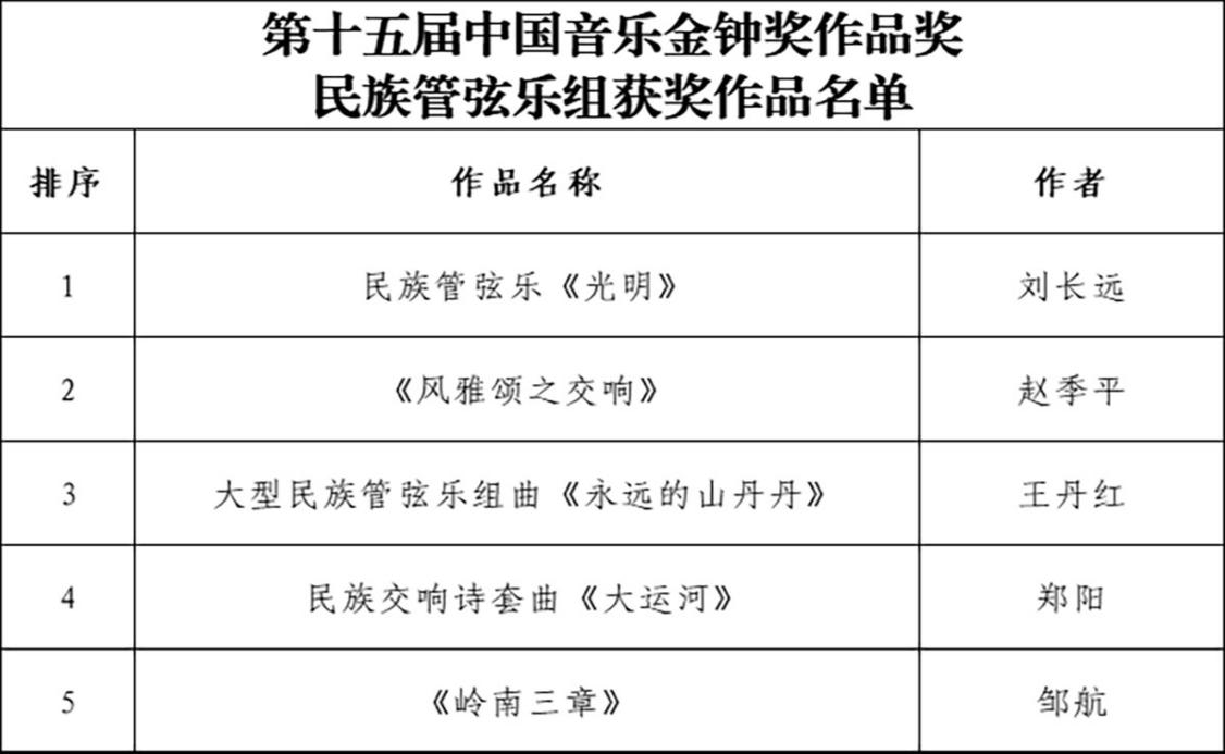 (通讯员 周慧娴 竺梦媛 廖梓雯)近日,中国音乐家协会公示第十五届中国音乐金钟奖作品奖拟获奖名单,公司名誉经理、特聘教授赵季平先生的作品《风雅颂之交响》荣列金钟奖交响乐作品民族管弦乐组获奖名单,为公司艺术教育事业再添殊荣。