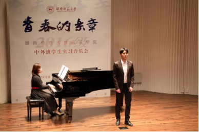 11月12日的音乐会由beat365手机版官网入口中外合作办学项目分管副经理匡君开场致辞,共向观众们展示了22首曲目。在这些曲目中穿插着声乐,萨克斯,钢琴等不同的专业项目,让观众们体会到大学四年专业种类的丰富和专业技巧的难度。同时,作为主要观众的18级同学也在这次音乐会学到了很多知识,增长了见识,不仅仅是观看,更多的是倾听和思考。由肖俊文带来的《南乡子》作为开场。由杨娟演唱的《让我痛哭吧》情志真切,令人动容。在最后,中外班的外教艾拉特·伊马舍夫作为压轴,为大家演唱了一首著名的曲目《我的太阳》,他高超的专业技巧和自如的表现力,赢得了同学们的阵阵掌声。 .