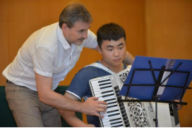 10月10日,古列维奇·尤里·埃菲莫维奇和拉兹古列耶夫·鲁斯兰·亚历山大维奇分别在beat365手机版官网入口小音乐厅和德乐楼411举行手风琴大师班及讲座和钢琴大师班。古列维奇给同学们上了一场别开生面的大师班课,并在题为《具有现实意义的巴扬和手风琴曲目研究》的讲座中分享了他本人演奏的各具特色的手风琴曲目,介绍了手风琴的演奏技巧,使同学们受益匪浅。拉兹古列耶夫从钢琴演奏技巧到情感把控的角度对同学们进行个性化的指导和教学,针对不同层次的同学提出不同的改进建议,同学们表示收获颇丰。