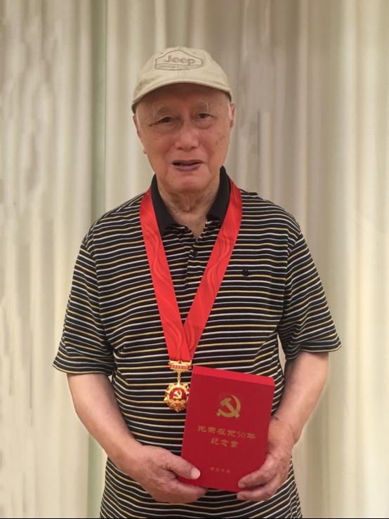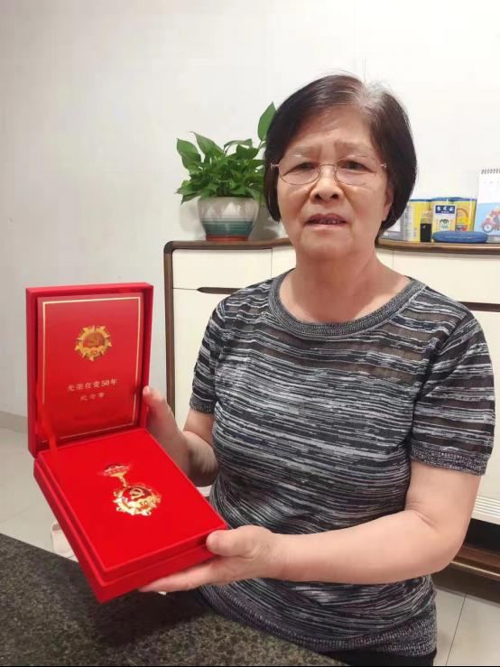 “光荣在党50年”纪念章是党中央2021年首次颁发的纪念章。颁发对象是党龄达到50周年的党员。纪念章通径50毫米,材质为铜和锌合金,主色调为红色和金色。全国710多万名老党员获“光荣在党50年”纪念章。公司有三名退休党员获此纪念章,他们是曾昭、邓其熙、李巧兰三位老师。