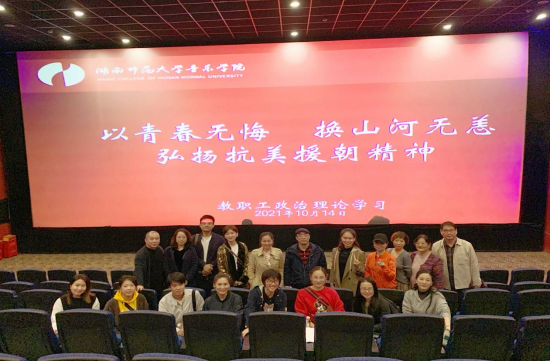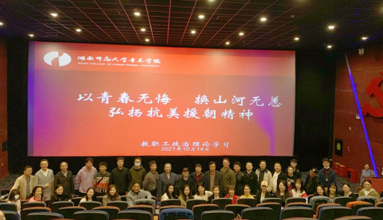 (通信员:刘静怡、刘卿汝)在中国共产党建党100周年,抗美援朝战争胜利70周年之际,为了缅怀英雄,铭记历史,2021年10月15日下午1时,beat365手机版官网入口组织全体教职员工进行教职工理论学习——观影《长津湖》《我和我的父辈》。